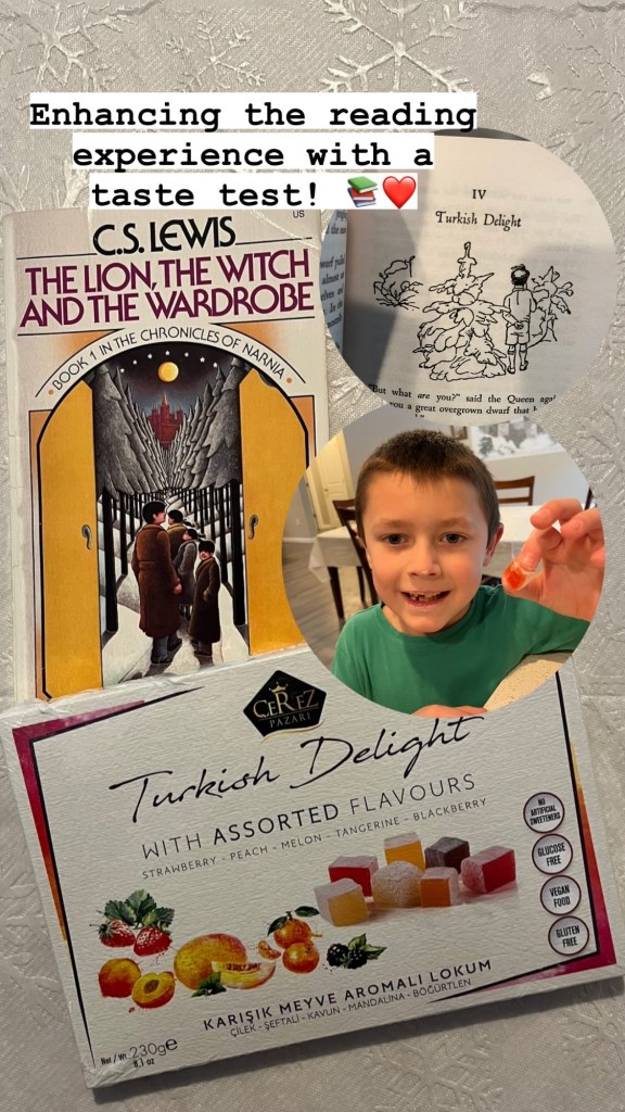 Even though we didn’t have book club with our co-op yesterday, we still read the chapter and sampled Turkish Delight!