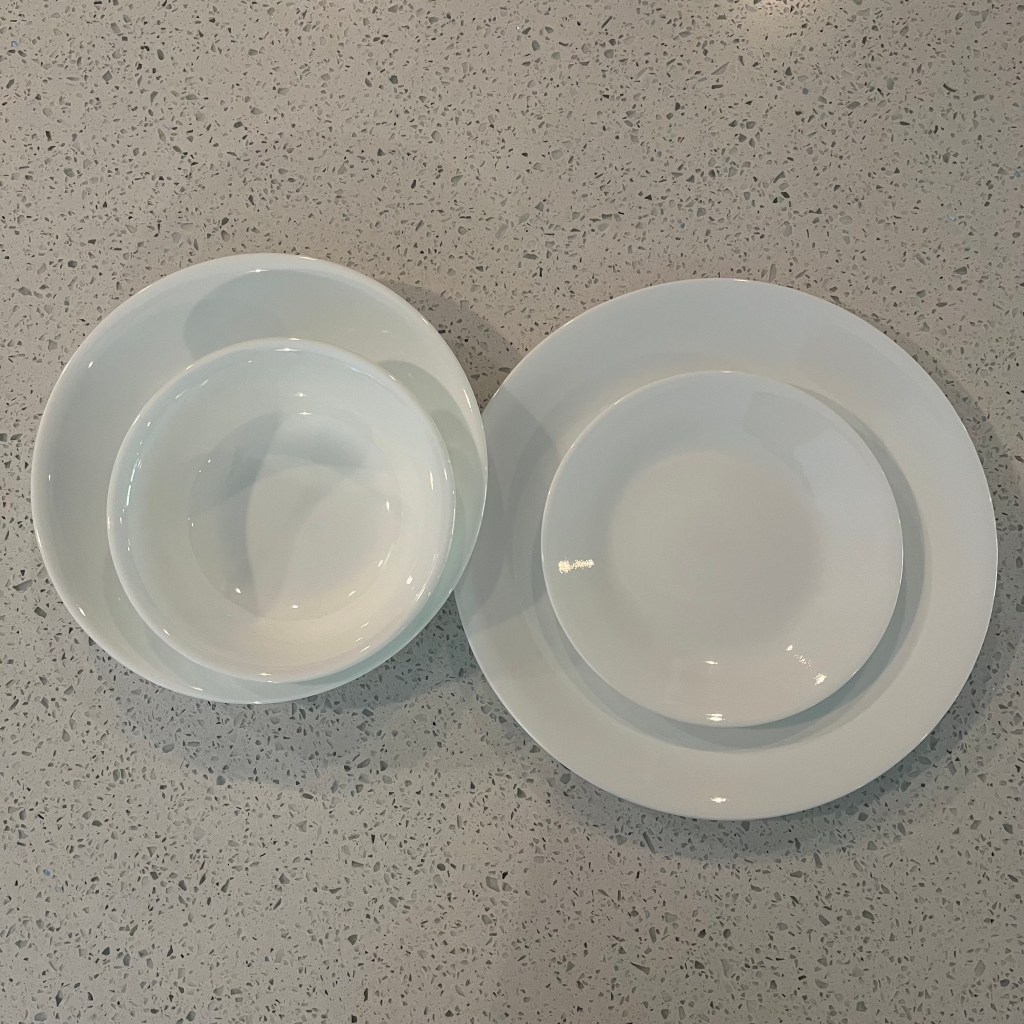 After years of talking about it, I got Corelle Winter Frost White dishes. I love that they are a simple white and thin for easy storage.