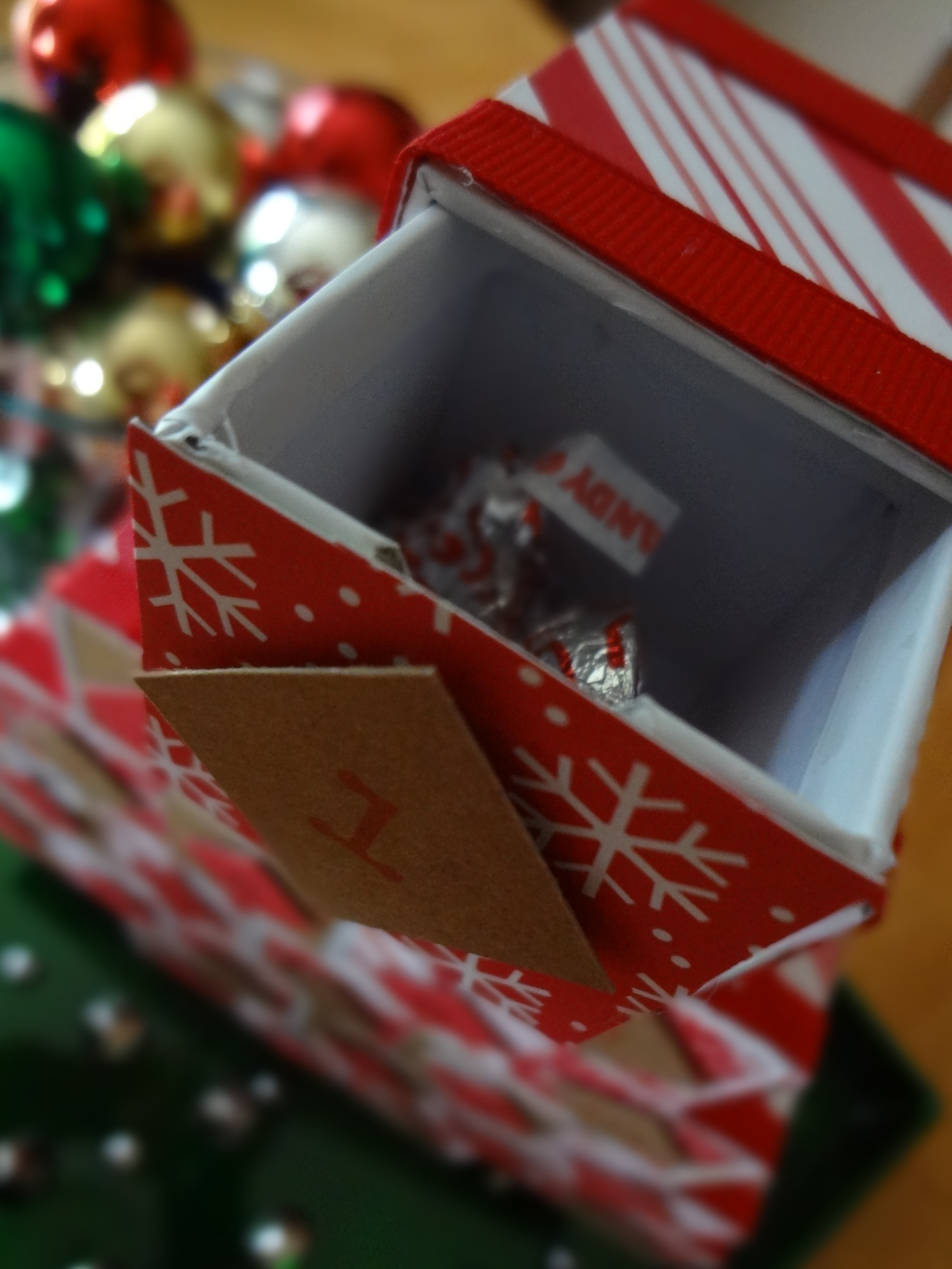 I usually do an advent calendar. The last few years I’ve used a homemade one that I decorated myself. It’s a tree with 24 drawers on it. Each day I pull a goodie out of it to countdown the days. My treat of choice is Candy Cane Kisses! Yum! Jeremy has a special peppermint bark candy in the drawers as well. The true purpose of Advent isn’t about a candy in a drawer. Advent is about a longing and anticipation. It’s about seeking the Savior. The greatest gift ever given is the reason we celebrate Christmas. It’s about God becoming man. It’s about God wanting a relationship with us, bridging the gap, coming to redeem his creation. How can you not long for a holiday with so much hope, so much love? We celebrate Emmanuel! God with us! We are not alone and we are deeply loved.