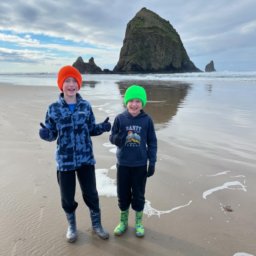 The final adventure I have to share is our family trip to the beach yesterday. We had errands to run and the weather was so nice, we thought why not run our errands out at the ocean! It was a beautiful day for a drive out to the coast. We had breakfast our favorite spot, Pig ‘N Pancake. We took a chilly walk on the beach at Cannon Beach and then explored a few spots in town (the toy store, candy store, and bakery). We hit Costco and Walmart before having “linner” at Mo’s (Yay! Clam chowder in a bread bowl!). We were home in time for sunset which was very important to Owen. With all these clear nights, Owen’s hobby of stargazing has picked up again. He is quite passionate about searching the skies in the evenings.