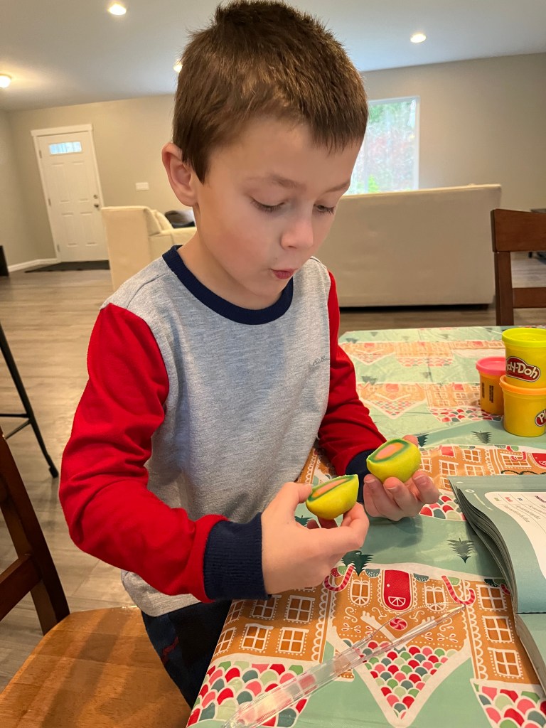 A few quick highlights… We dedicated the new playground on Sunday at church. It was freezing and definitely a memorable moment. Jeremy put red ribbon all around the playground and he let all the kids cut the ribbon together. The cold weather didn’t keep the kids from playing after the ribbon was cut. On Sundays, we’ve been working on our Christmas musical. Parts were given out in October and Owen has two singing solos this year. He is happy with the solos he was given. I’m sort of thankful he didn’t get a speaking part. It was great last year, but it means less pressure on me to help him run his lines at home. I’m good with that. We’ve completed our 1st quarter of school! All is well on the homeschool front. We are in a good groove.