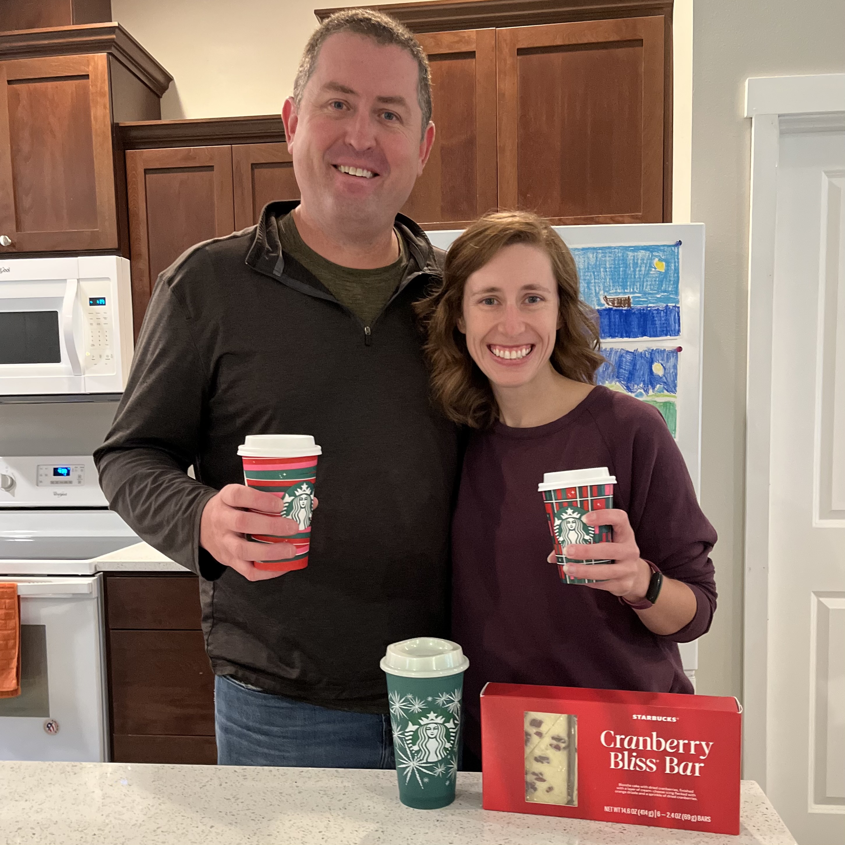 And finally, today is Red Cup Day, which is a holiday in this household. Jeremy came home at lunch with Starbucks treats! I had my first peppermint hot chocolate and cranberry bliss bar of the season! Jeremy got a gingerbread latte and Graham got a snowman cookie. We love these seasonal treats! Jeremy also surprised me with a super pretty reusable cup. Happy Red Cup Day!
