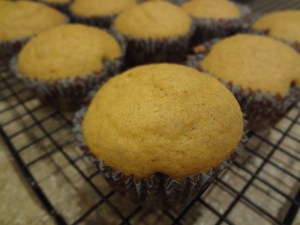 I followed the cupcake recipe to the letter – except when it came to the pumpkin pie spice. I don’t own that spice, but I do own all the spice that make it, so I quickly threw together my own pumpkin pie spice. When it came time to think about frosting I was in a bit of a pickle. Most pumpkin recipes call for cream cheese frosting. I didn’t have any cream cheese frosting and I felt no need to run out and get some. Instead I used the basic vanilla butter-cream recipe and added pumpkin and spice! Thus creating Pumpkin Spice Frosting!