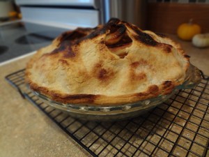 Last Saturday was my first venture at pie making on my own. I’ve watched Jeremy make a pie and I’ve made a pie with Jeremy, but until last week I had never done it by myself. It was a bit of a personal challenge to show myself that I can do it. Apple pie was decided on because it was to be shared with family for my father-in-law’s birthday. He is big fan of apple pie, so it seemed that would be the best option. Since it was my first time, I did learn that I need to add more apples next time. I used an extra apple in the recipe, but I should have used another. I know that for next time. I also used a mix for the crust again. Now that I am out of the mix, I plan of making my own crust next time. Baby steps!