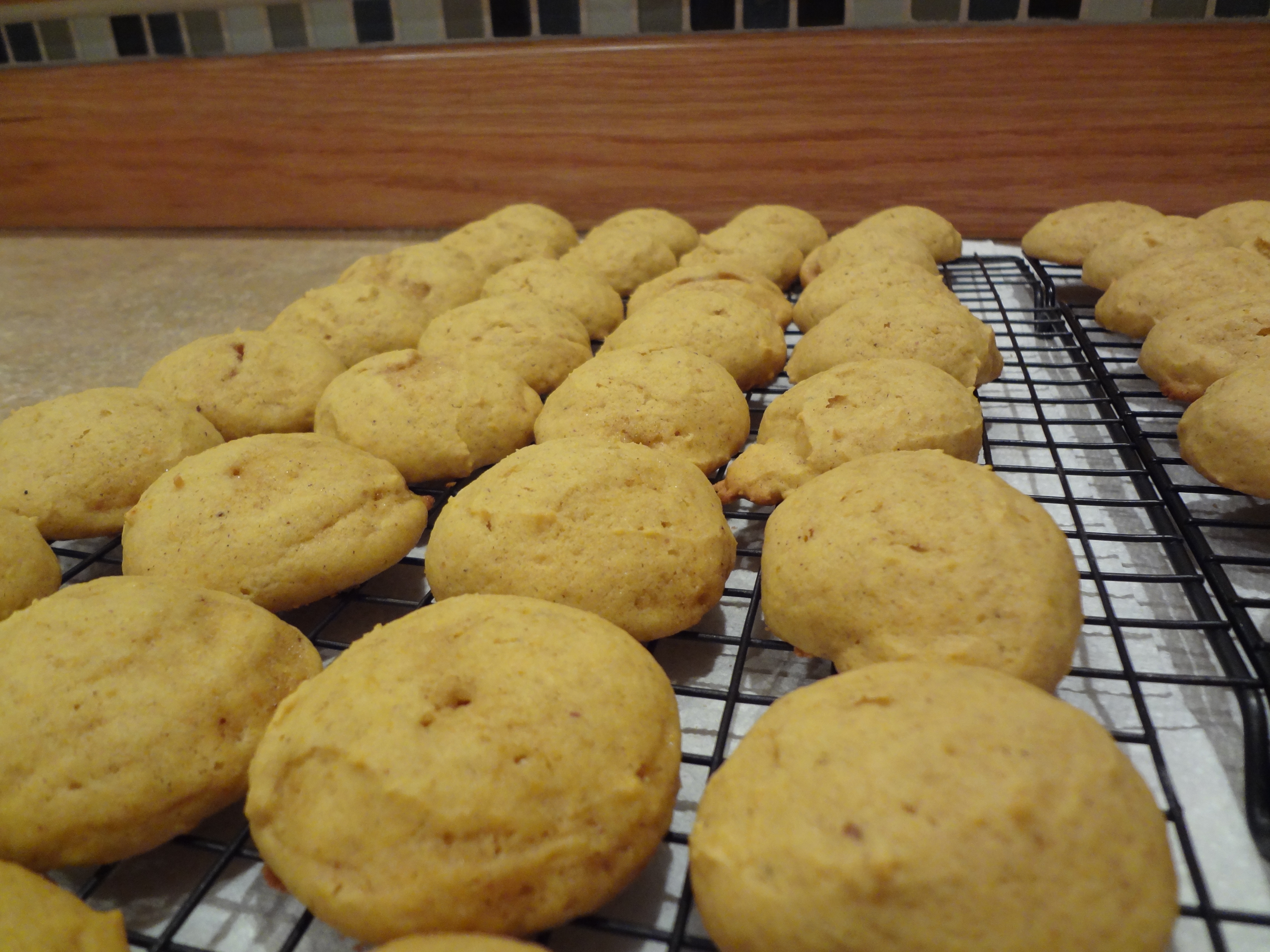 I knew that I wasn’t going to the store before I needed to bake the cookies. This left me the option of anything in my pantry which was starting to become limited. Jeremy and I are in a phase where we eat everything before we go back to the store. Needless to say, I was low on a lot of items, but not pumpkin. We had purchased four cans before thanksgiving and had only used one up to that point. I decided on a pumpkin cookie from a cookie magazine. My mom is no longer eating sugar so she gave me a bunch of Christmas cookie magazines since she would no longer need them. It was hard to decide what cookie to make since I had so much inspiration! The pumpkin cookies were very soft and cake like. I really like baked goodies like that.
