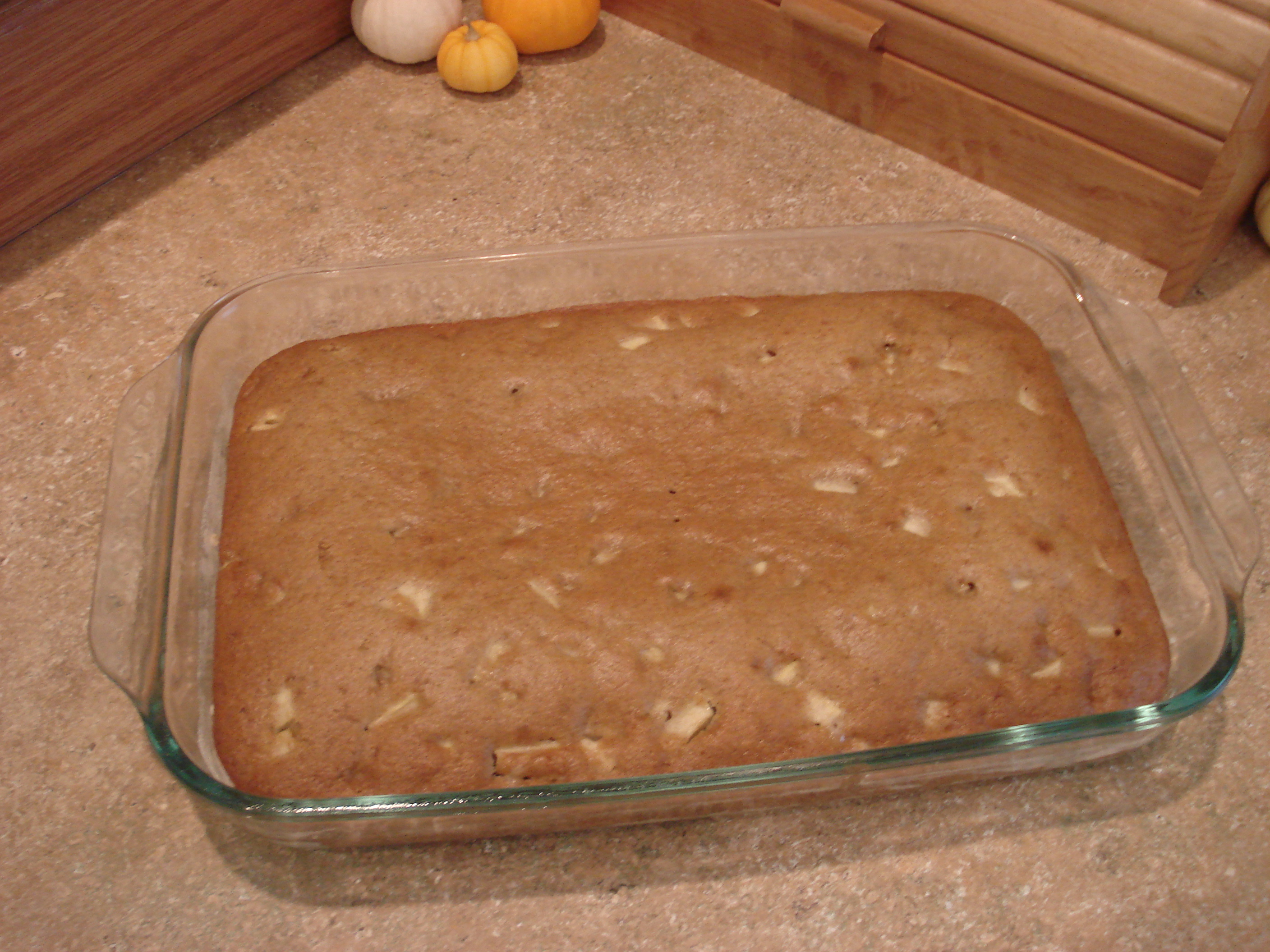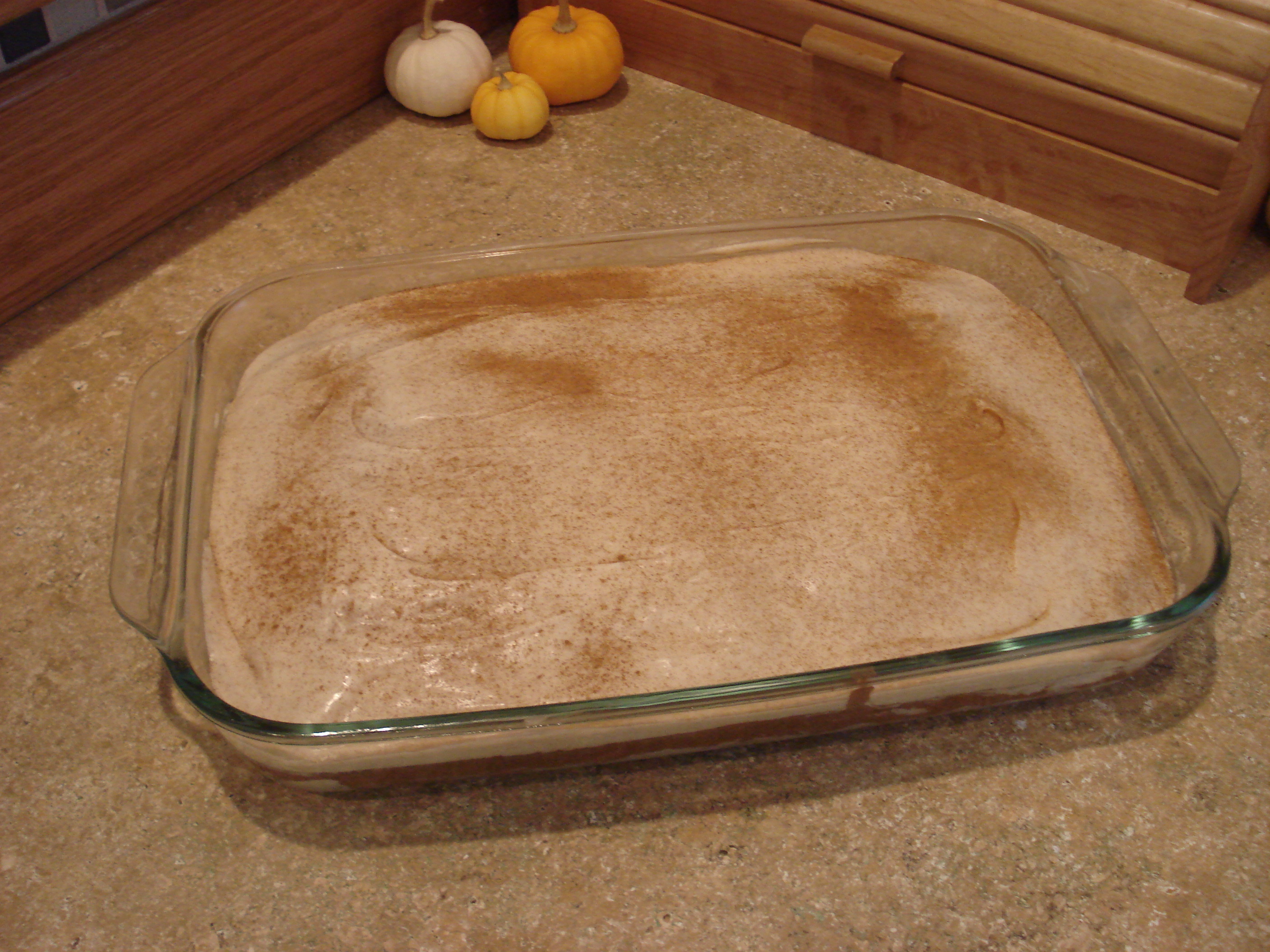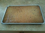 the treats into a pumpkin. I have a large pumpkin shaped cookie cutter and I knew that if I used it I wouldn’t get enough servings out of the recipe to share with my class of girls tonight. I decided to keep it all in the 13×9 pan instead.