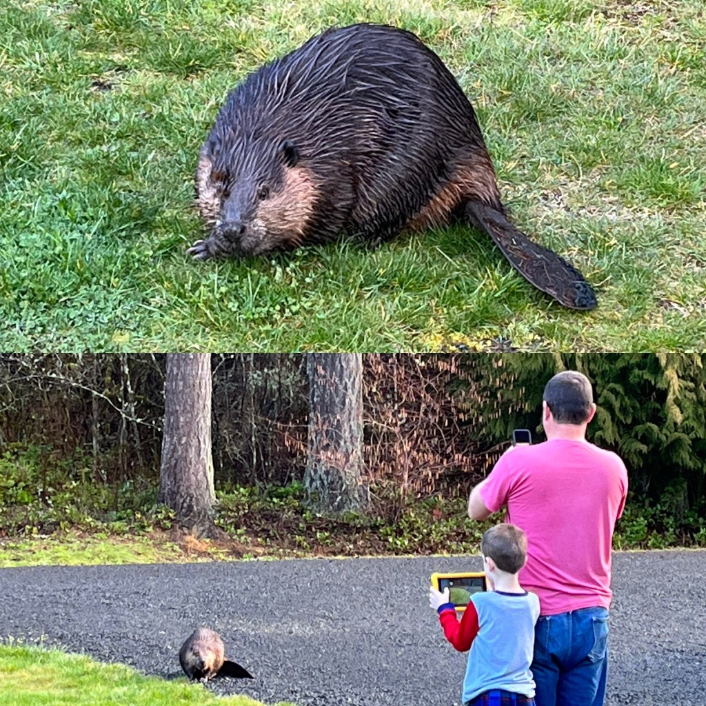 Okay, visiting camp wasn’t the only highlight of the last week. I’ll try to hit the others quickly. On Thursday, we visited friends and saw quite a few trains on our journey to/from their home. The boys are still obsessed with trains, so it was a very good day! We met Jeremy for dinner at our favorite Mexican restaurant (which I find funny since it was St. Patrick’s day). Friday night, I attended book club. I enjoy discussing books with other moms and my book recommendation list is super long now. On Saturday, we had a beaver walk up our driveway and into our front yard! We apparently live in a zoo or maybe Narnia. Saturday evening, we had friends over for dinner and the boys got to do their favorite thing – flashlight tag in the yard. Sunday, our chickens got attacked by an eagle. We missed the drama but my parents saw it happen. A crow attacked the eagle and scared it off before it could harm our chickens. A big thank you to that crow! Between a beaver in the yard on Saturday and an eagle on Sunday… we seriously live in a zoo!
