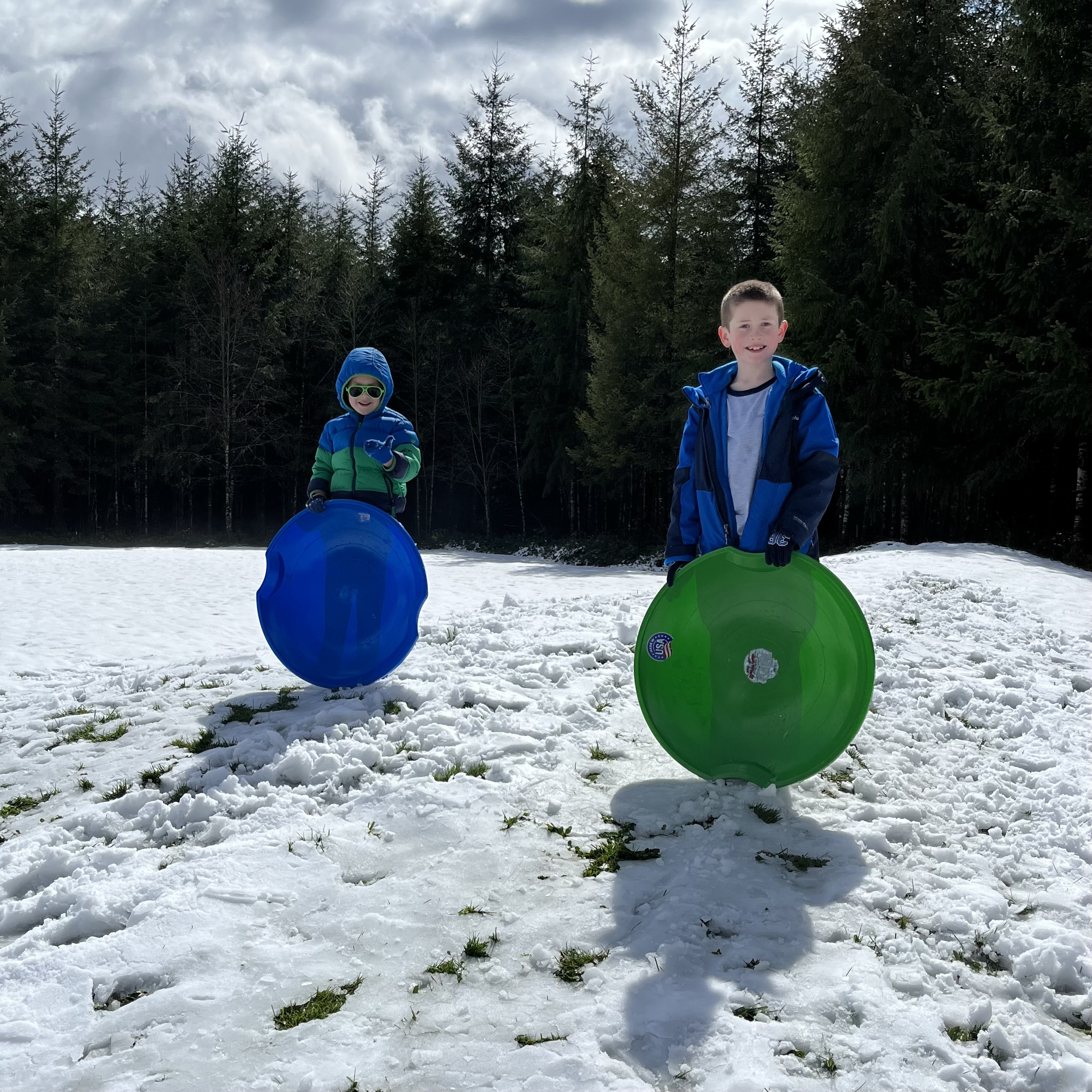 The biggest spring surprise this week was snow! Lots of snow! We woke on Monday to a spring snowstorm. We took a snowy walk before school and then the boys did some sledding in the afternoon. I’ve never seen snow like this in April. We are used to a spring weather mix, but not inches of snow on the ground. It was crazy. It felt like we should be prepping for Christmas instead of Easter this weekend. We’ve seen snowflakes each day this week and even yesterday, we woke up to a white world again (just not as much as Monday).