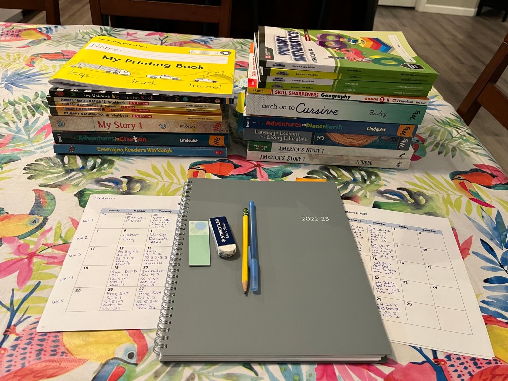We wrapped up our summer school books this week! Now we have two weeks off before starting school at the end of August. I planned our first quarter yesterday afternoon. Feels good to have it all written down in the official planner!