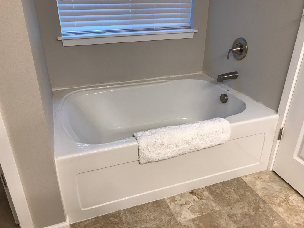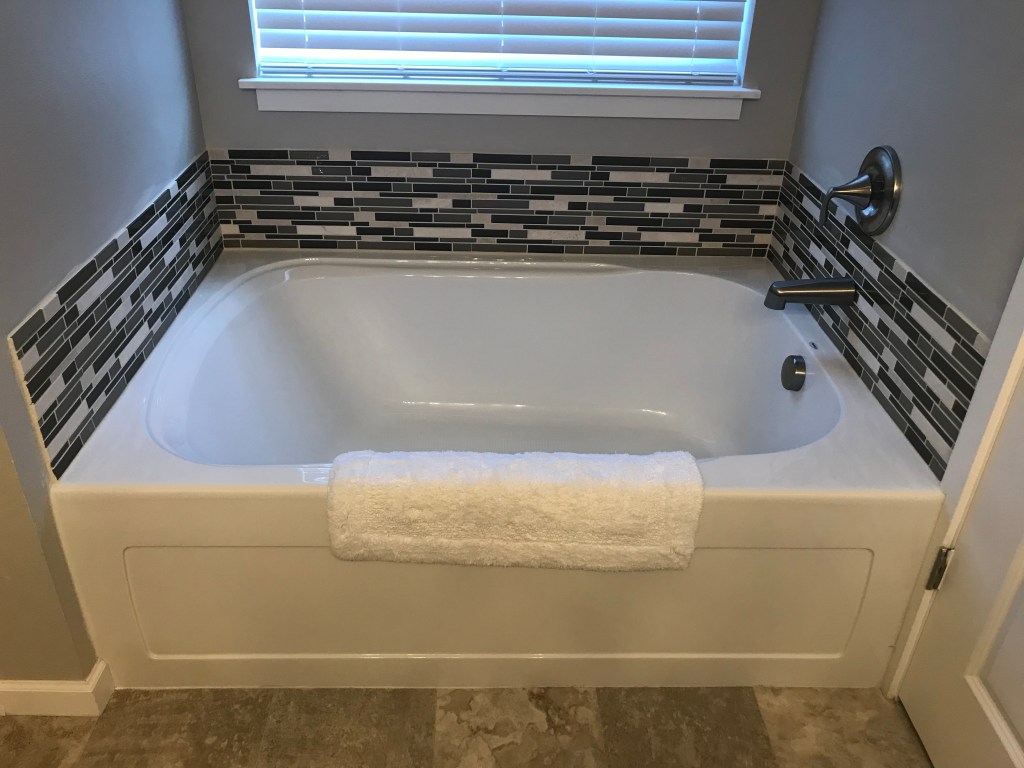 The excitement of the weekend was that my hubby completed a house project that has been on the to-do for years now (pretty much since we moved in). We had hoped to add a tile backsplash around our master bathtub over Christmas vacation. After looking at title options, we decided to order online which delayed the start of the project. The tile arrived last week and Jeremy spent the weekend installing it (with Owen supervising from time to time). I love having a handy hubby! Since our master bathtub is used by two wild, splashy boys, our walls are now better protected from the tidal waves and hurricanes that occasionally occur. I love that the tile we chose pulls in the colors of our flooring and the pre-existing tile around our countertop. I look a celebratory bubble bath last night and loved being surrounded by my hubby’s handiwork. Way to go, Jeremy!