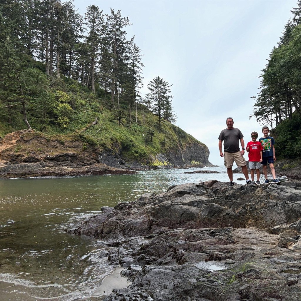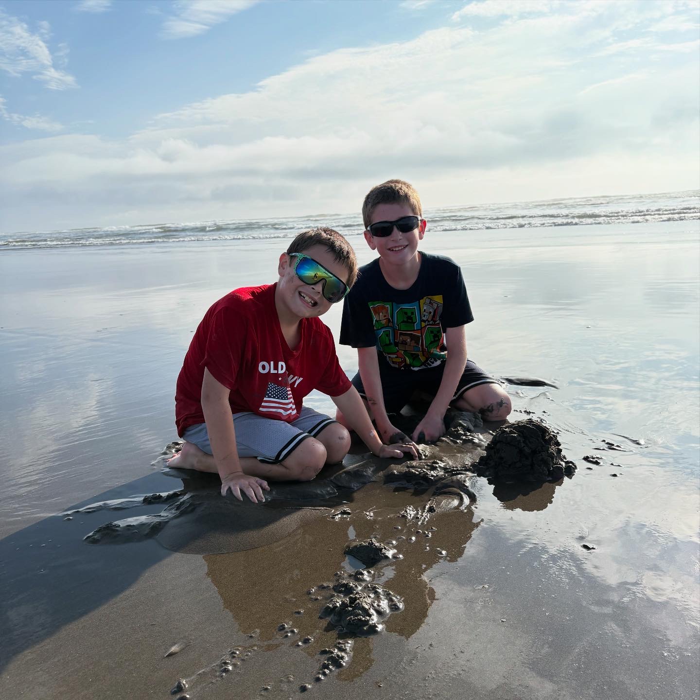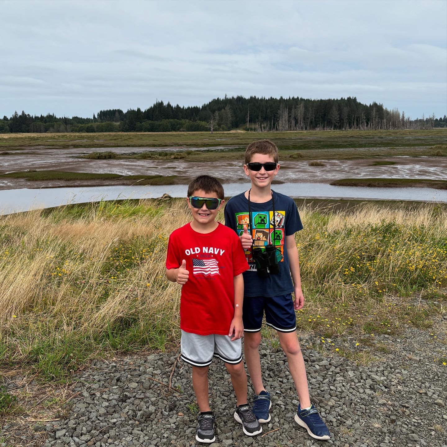 Monday was our town day and Tuesday was our nature day! We hiked a couple trails at the Willapa National Wildlife Refuge. Visiting the refuge was on Owen’s bucket list. While he didn’t see as many birds as he hoped, we did enjoy time on the trails. The only downside of the morning was Graham got stung by a wasp. The best way to recover from a bee sting was cookies as the local bakery! After our time at the wildlife refuge, we went to Cape Disappointment State Park. We have visited the North Head Lighthouse before and this time the trail to the Cape Disappointment Lighthouse was open (it’s been closed in the past). We decided to explore a new trail and lighthouse. The view from the lighthouse was fantastic and the boys enjoyed our stop at Dead Man’s Cove. Not a pretty name, but a very pretty beach! Once our legs were done with hiking, we did a repeat of Monday – back to the house to rest for part of the afternoon, dinner, and then a trip to the beach. We wrapped up Tuesday with backyard smores and a beautiful sunset!