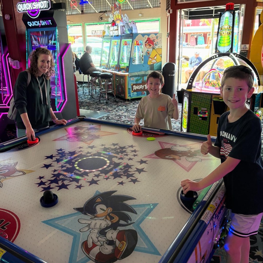 On Monday, we went mini-golfing in Long Beach. This was one of Graham’s summer bucket list items. We got there right when it opened and had the whole place to ourselves! We grabbed some lunch in town and then explored the kite festival happenings down at the beach. The kites were super cool to watch and Graham was thrilled to see a vendor selling churros as we walked down to the beach. Monday was really his day. After the kite festival, Jeremy surprised us all by suggesting we go to the arcade. The kids had a blast! I even played a couple of games. We got home mid-afternoon and crashed at the beach house for some rest. We enjoyed an evening trip to the beach and then a Scoopers run for ice cream. It was a great day in Long Beach.