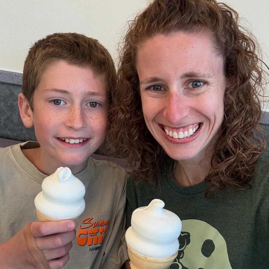 We got into Bend on Monday and tried a new treat – Handel’s Homemade Ice Cream! It was so good! I loved my s’mores ice cream. Graham thought his cinnamon roll ice cream was great and Jeremy was pleased with his deep dish apple pie flavor. Only Owen didn’t love his treat… The kid is committed, heart and soul, to Tillamook Mint Chocolate Chip. For him, nothing compares! Oh well. Three out of four Scotts gave it two thumbs up! Once we got settled into our Wildflower condo, we walked across the street to the Village. Owen has been looking forward to getting a new Sunriver t-shirt and hoodie. Graham found a wolf t-shirt he loved. After we had our SWAG, we spent the rest of the evening at the Cove. The Cove is the resort aquatic center and it features two pools and two water slides. We spent hours at the Cove everyday! The kids are now going through Cove withdrawals!