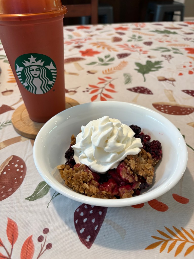 Triple Berry Crisp with homegrown raspberries, blueberries, and blackberries. Yum!
