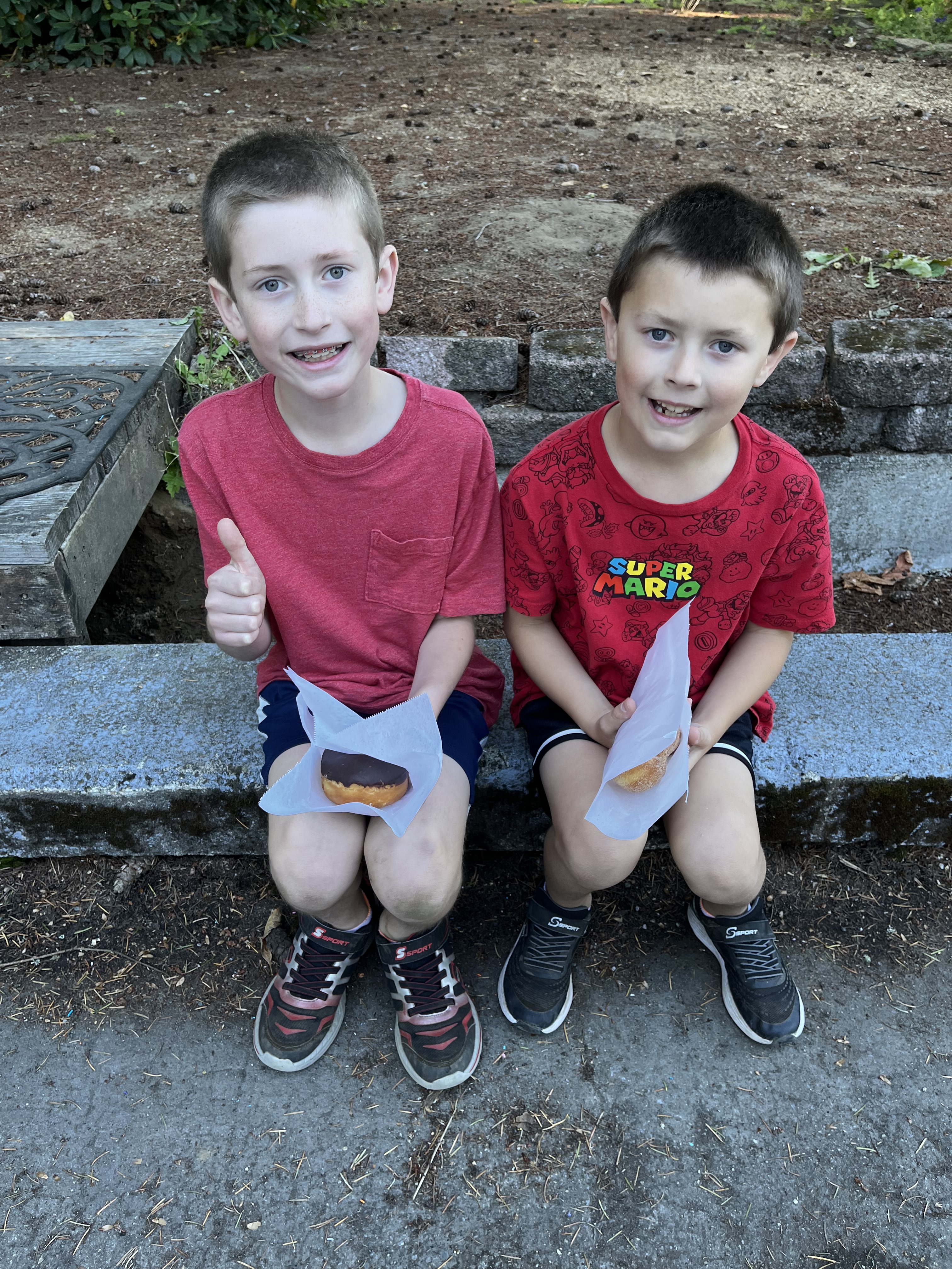 True to life, not all summer moments are fun and games. The boys had their first dental work this month (beside their biannual cleanings). Graham had a tiny cavity that needed a small filling. No numbing was necessary and the entire appointment took about 20 minutes. Easy peasy! Owen had two baby teeth that were getting in the way. Despite a month of wiggling, they didn’t come loose so the dentist had to assist. This was Owen’s first time getting numb at the dentist. He was nervous, but handled it like a champ. A few days after the dental work, Graham had his first consultation with the orthodontist. It looks like a palette expander and braces are in his future! Oh goody! I’m glad those appointments are behind us. We can give thoughts about teeth a short break.