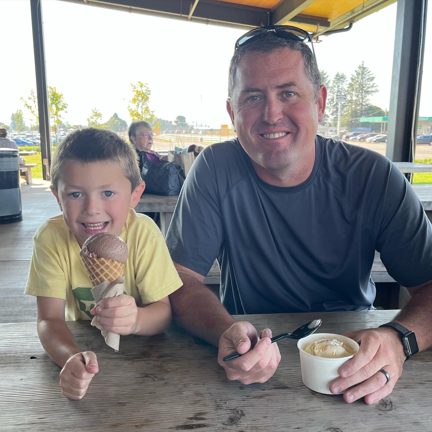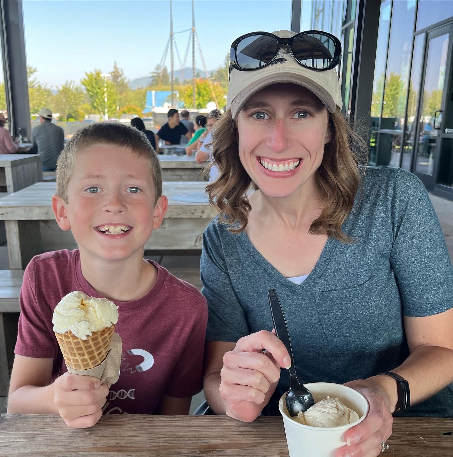 Lava Butte was our first destination the following day. We walked the path around the cinder cone and then took a walk through the lava fields below. It seems our vacation was really a geology field trip. After a volcanic morning, we went into Bend for lunch and shopping. Our afternoon included another family bike ride. This time to the resort playground. We returned our bikes after that ride and went for ice cream and souvenir shopping in The Village at Sunriver. We went to the Cove for our final swim, only to discovered that it was closed. Such a bummer, but we changed plans quickly. We went back to play at the park and then we grabbed a sweet treat to eat by the fire pits behind the Sunriver Lodge.