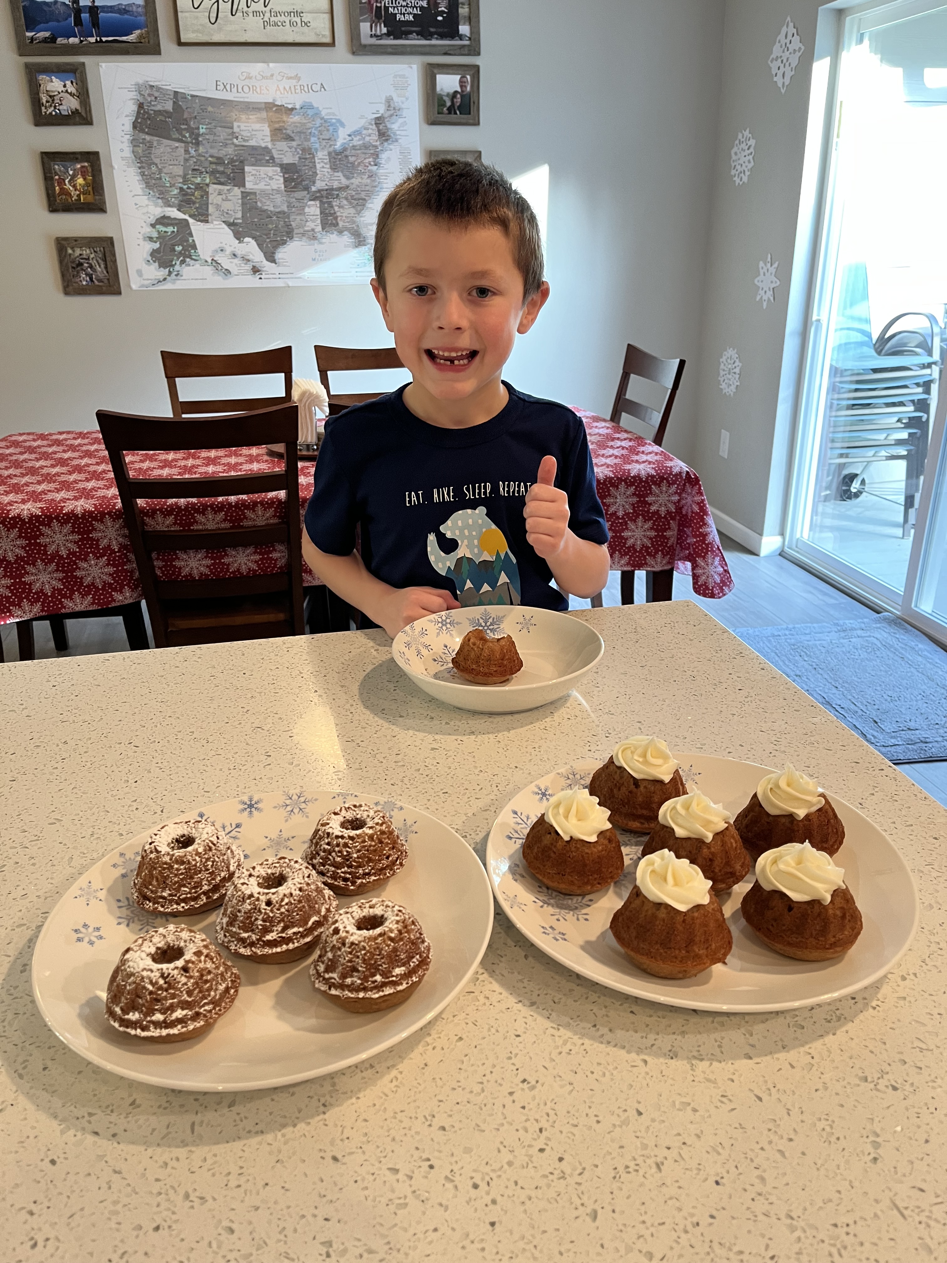 It’s been a big baking week for us. Owen helped me make a double batch of butter cookies on Monday. We froze them with plans to decorate them and give them out as Valentine’s gifts. I delivered a meal to a friend with a new baby. I made some brownies and cinnamon rolls (a double batch so we could keep one pan for ourselves) to include with the meal. I’m not a great cook so my “meal” consisted of frozen lasagna that I baked before delivery, a bag of salad, a bag of dinner rolls, brownies for dessert, cinnamon rolls for breakfast the following day, and a bottle of sparkling cider. Nothing fancy, but gifted with love and excitement. Graham helped Jeremy bake lemon bars today with lemons from his greenhouse. They made the kitchen smell so good! I plan to make another batch of brownies tonight – this time for the Super Bowl tomorrow.