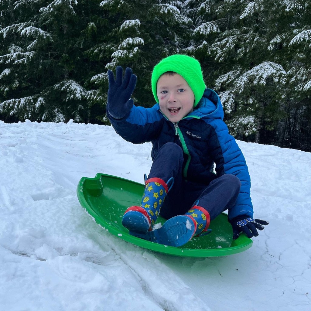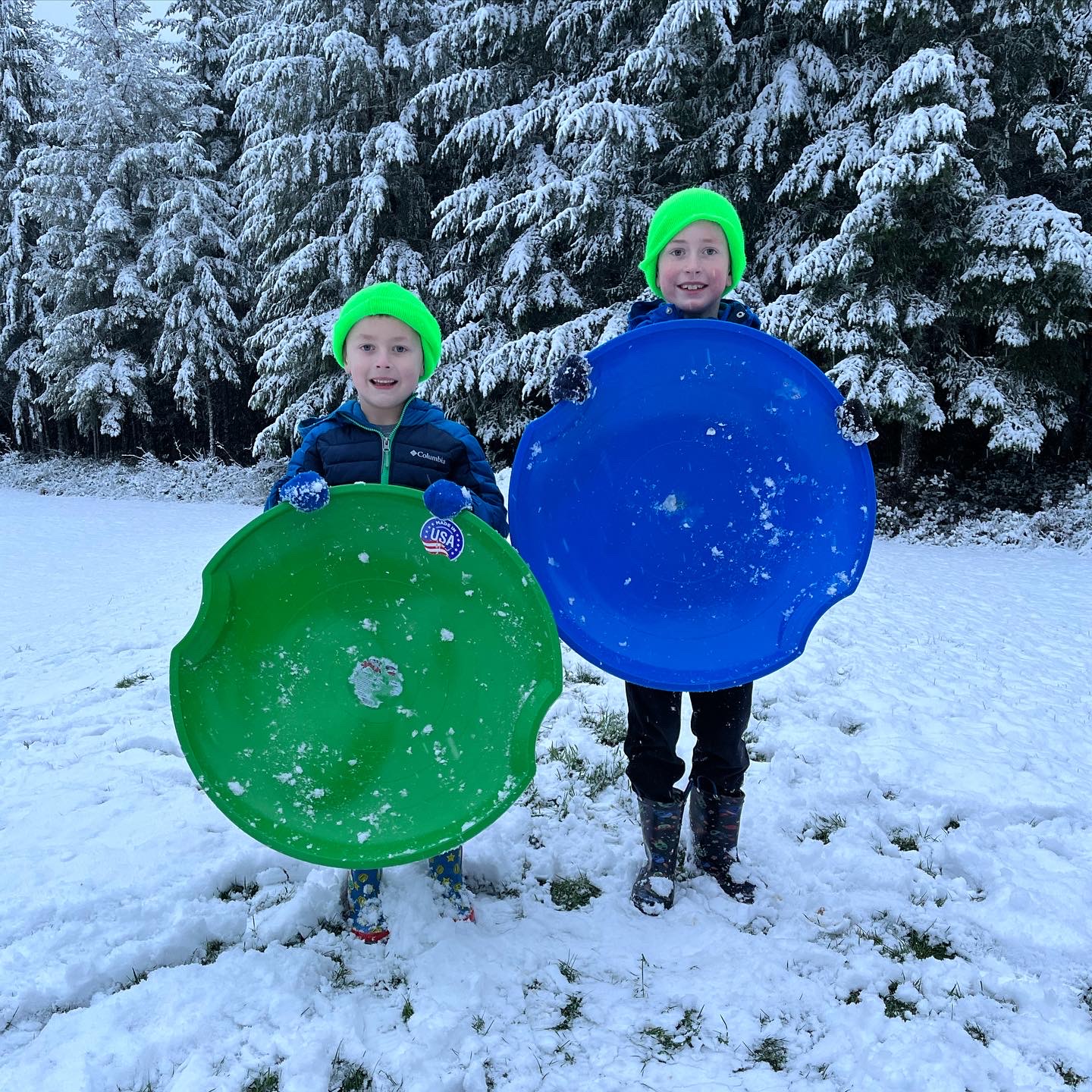 Our February 22nd Snow – the boys got some “sledding” in before church!
